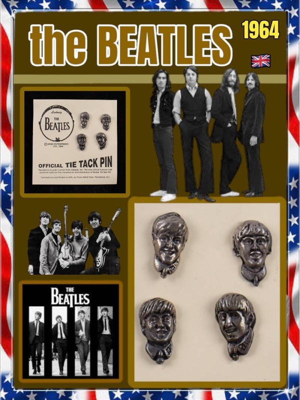 "The Beatles" 1964 vintage Set of (4) Pins - prestigious frame